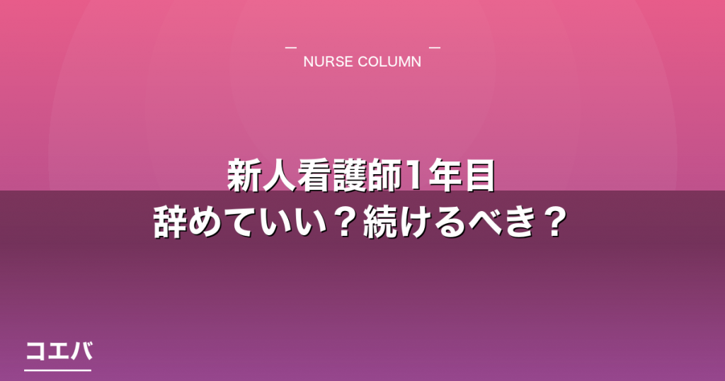 入職して数ヶ月。毎朝出勤が怖くて、夜は眠れない。プリセプターの顔を見るだけで胃が痛む。そんな1年目看護師の声は珍しくない。新人看護師の1年以内離職率は約8%。10人に1人が1年以内に辞めている。この記事では、辞めるべきサインと続けるべきサインの見分け方、1年目で辞める場合の進め方を整理する。